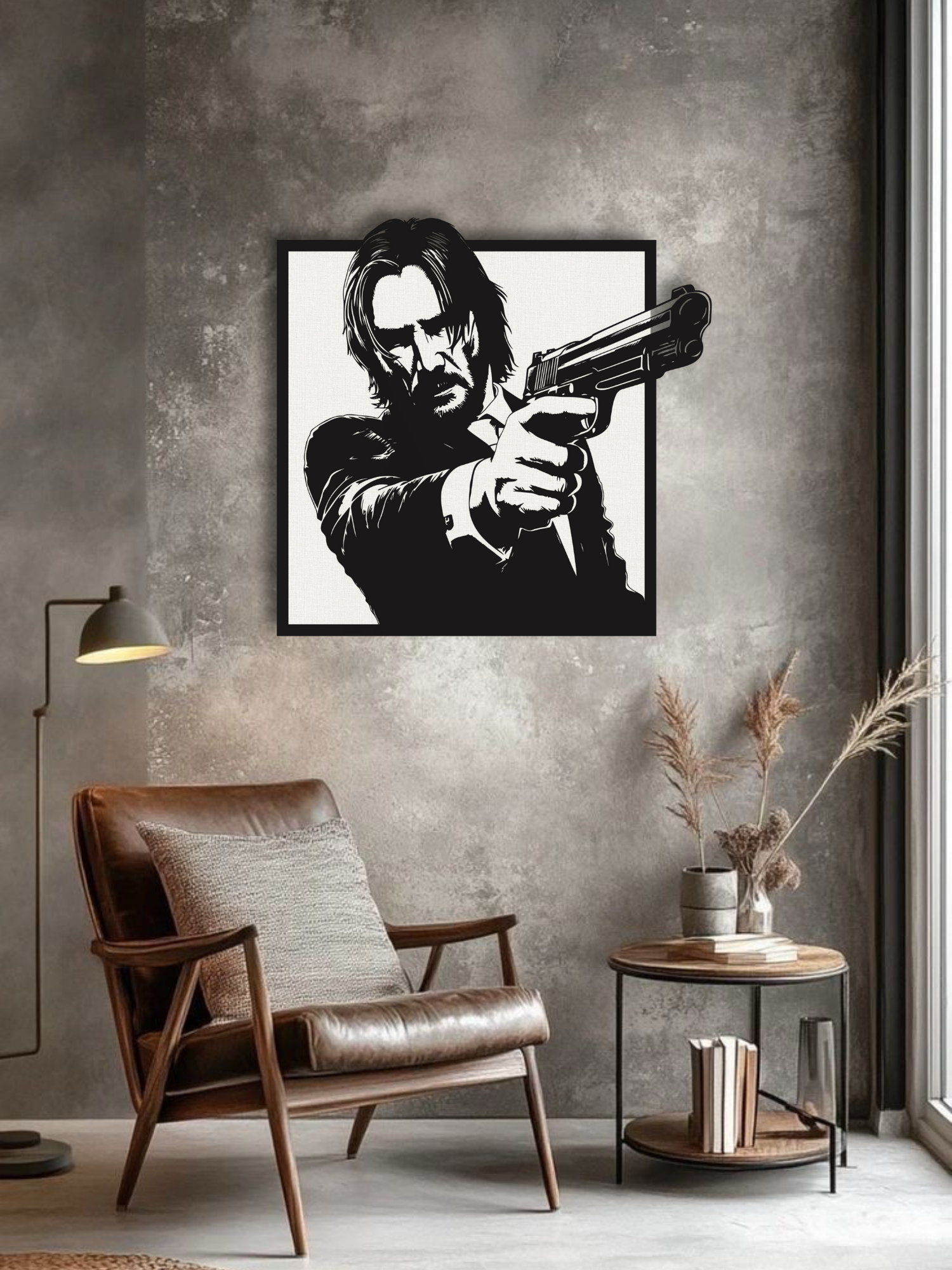 Динамично и въздействащо пано, вдъхновено от емблематичен екшън герой, символ на решителност, концентрация и непоколебима сила. Силуетът е изграден с остър контраст и изчистени линии, които създават силно визуално присъствие и кинематографично усещане.